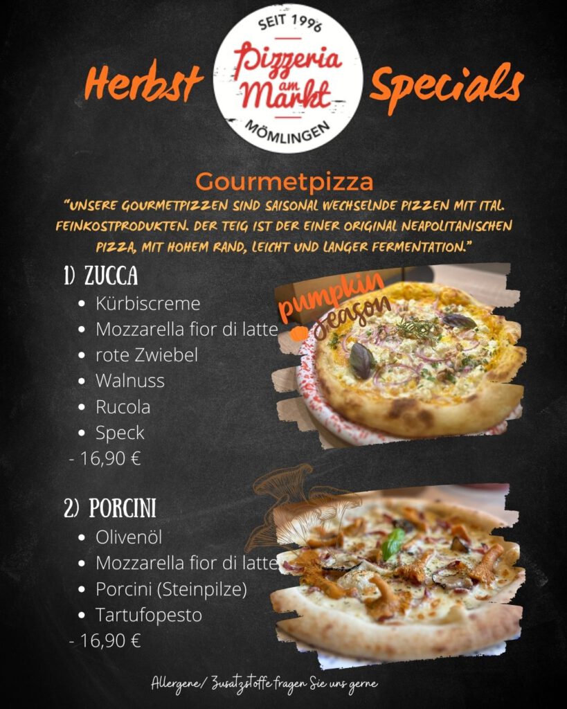 Salami, Peperoniwurst, Schinken*, Thunfisch, Muscheln, Sardellen, Pilze
